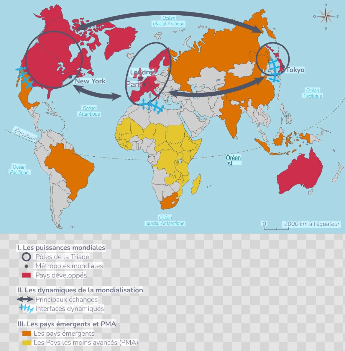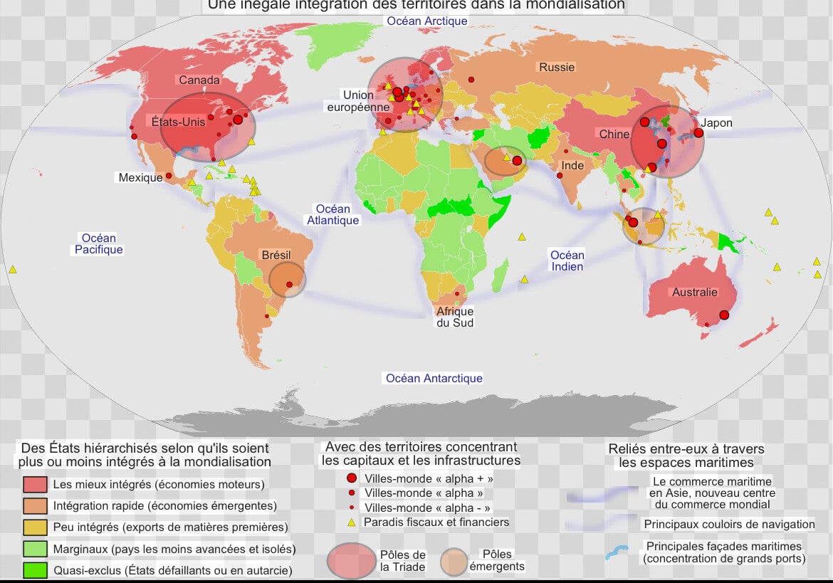 Carte du monde moderne et de la mondialisation du XXe siècle à aujourd'hui huis